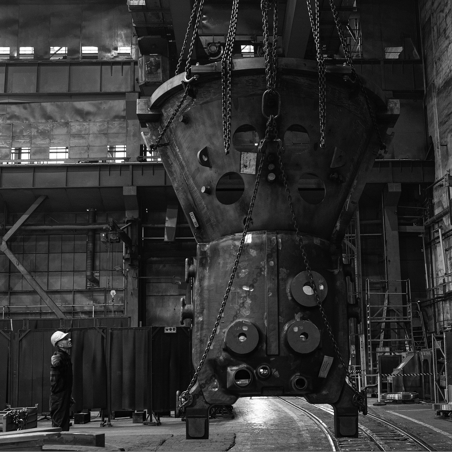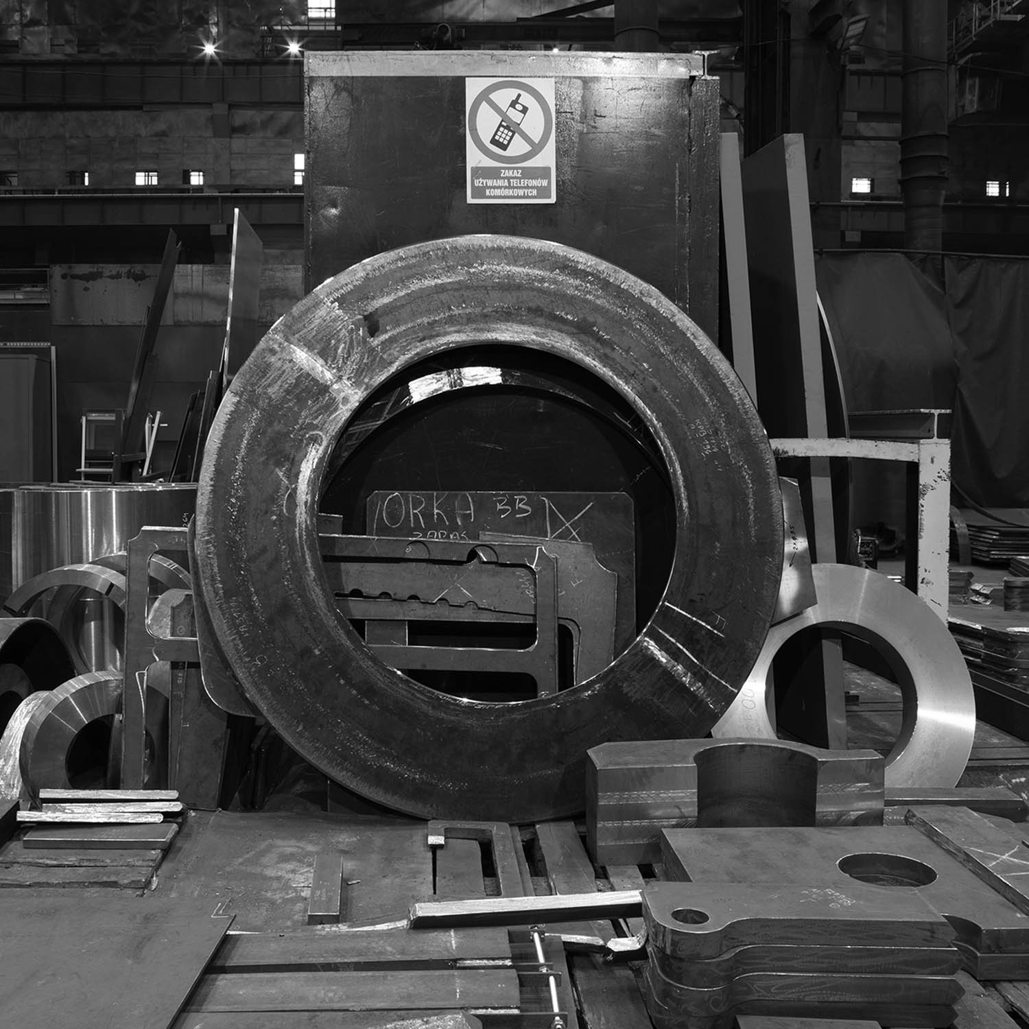 • fotografia obrazuje uproszczone portfolio naszego działu obróbki mechanicznej • widoczne są na niej międzyinnymi procesy: gięcia, fazowania na karuzeli i wytaczarce, palenia ręcznego okienek po trasowaniu, gięcia stożka, wypalania automatem STIGAL, fazowania ręcznego blach o grubości 80mm.